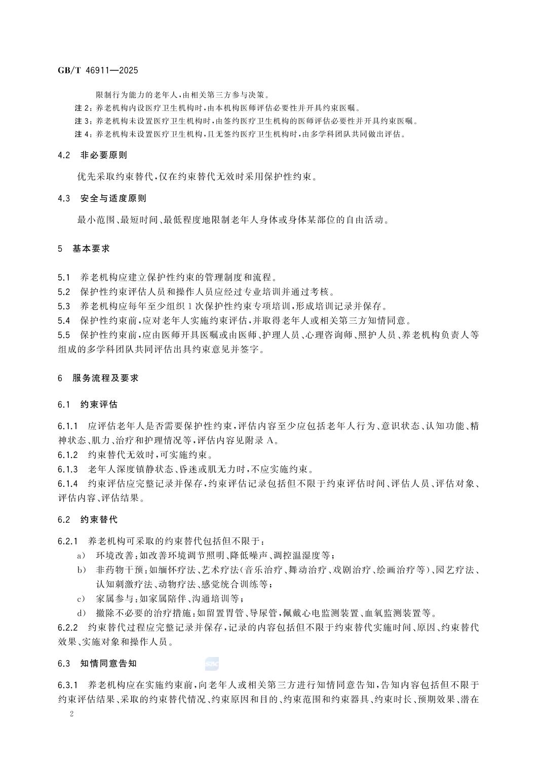 国家标准:《养老机构老年人保护性约束服务规范》