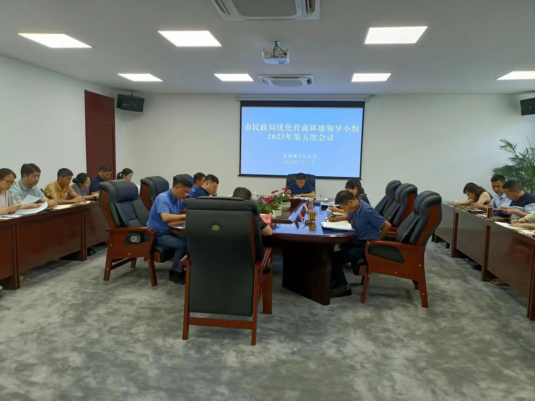 7月11日,市民政局优化营商环境领导小组2023年第五次会议召开。局优化营商环境领导小组成员、局优化营商环境领导小组办公室成员参加会议,市民政局党组书记、局长程卫东主持会议。