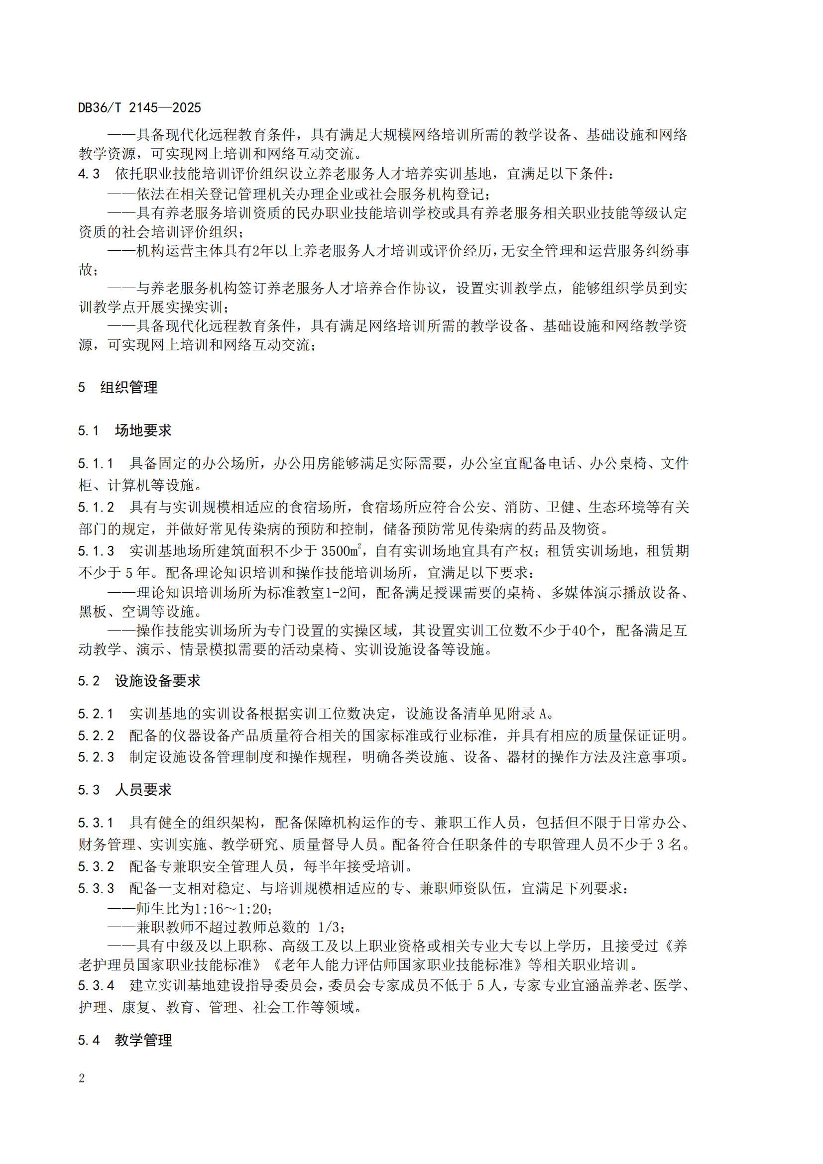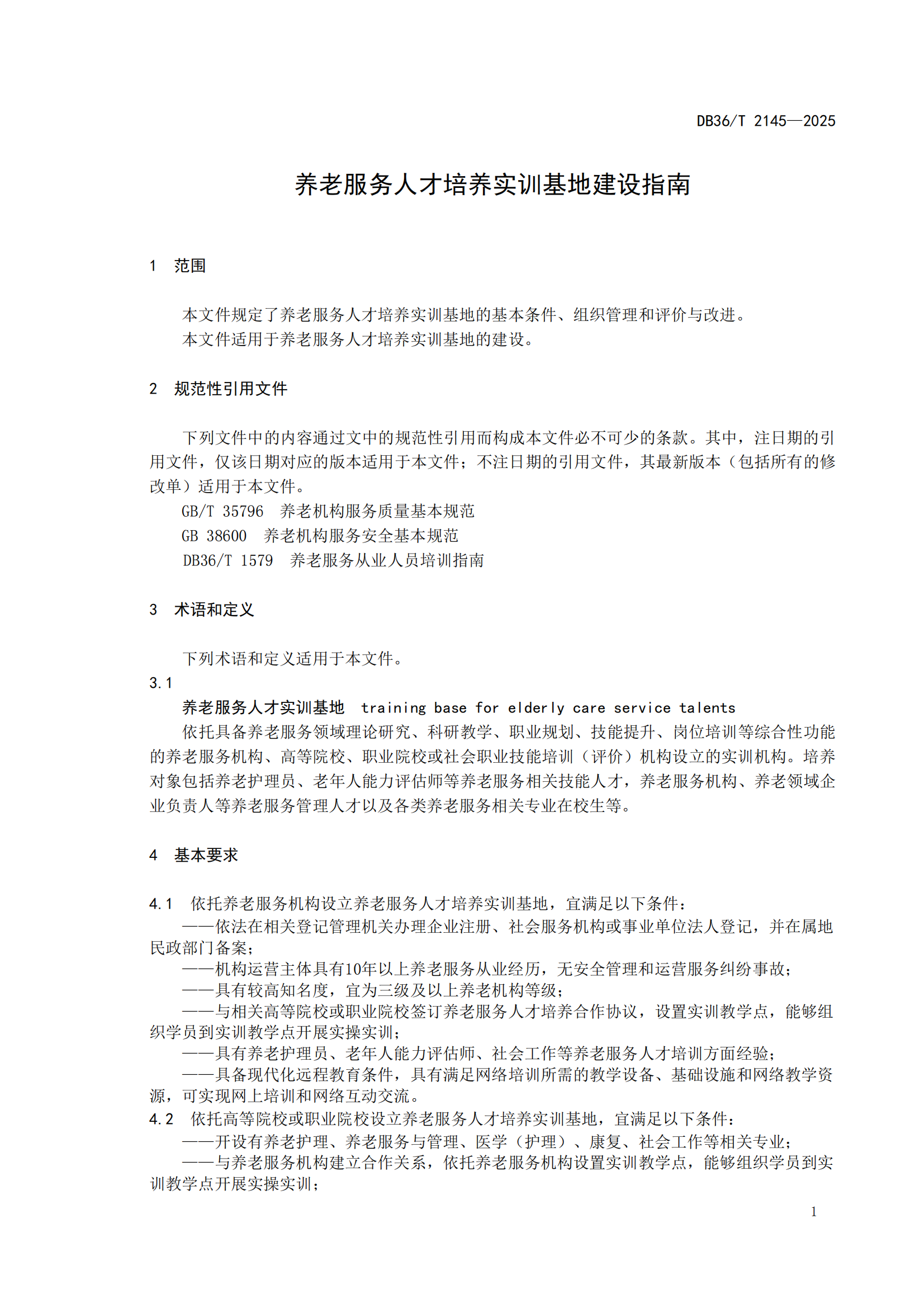 【上级文件】江西省地方标准:养老服务人才培养实训基地建设指南