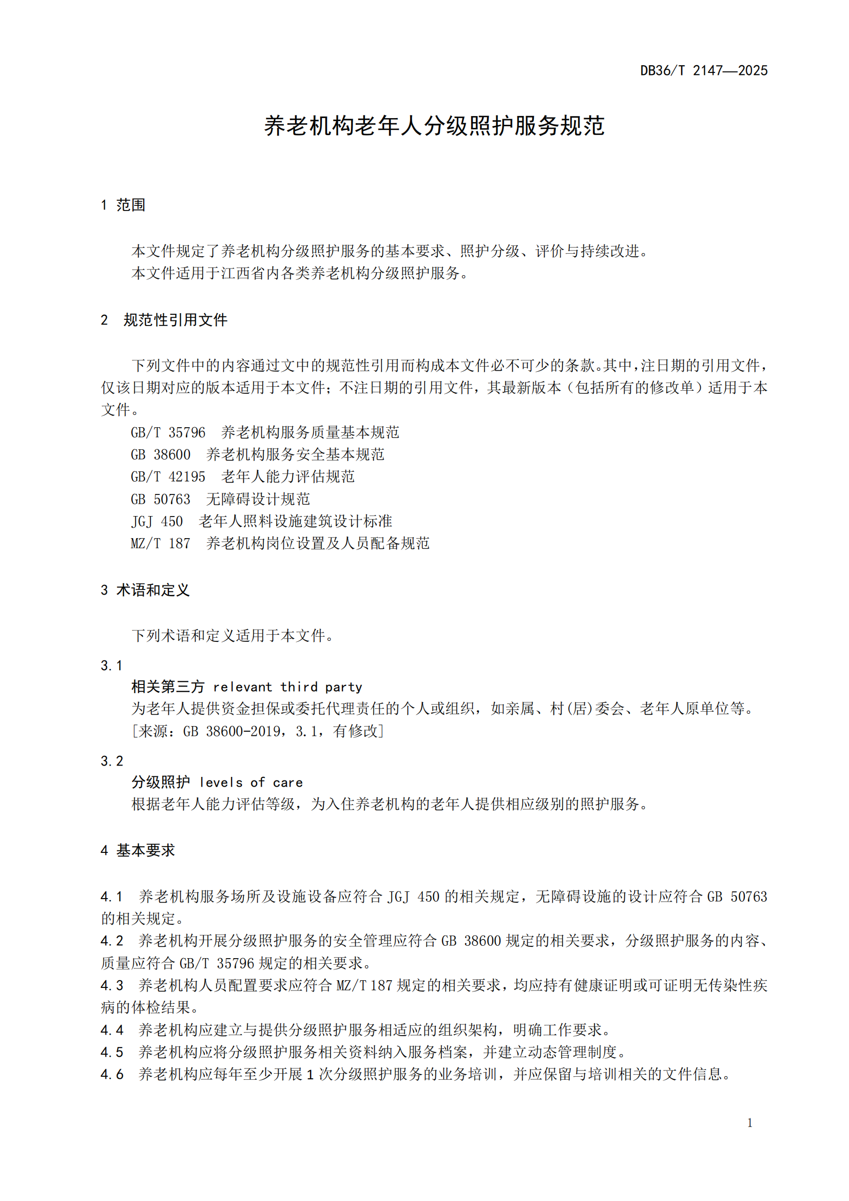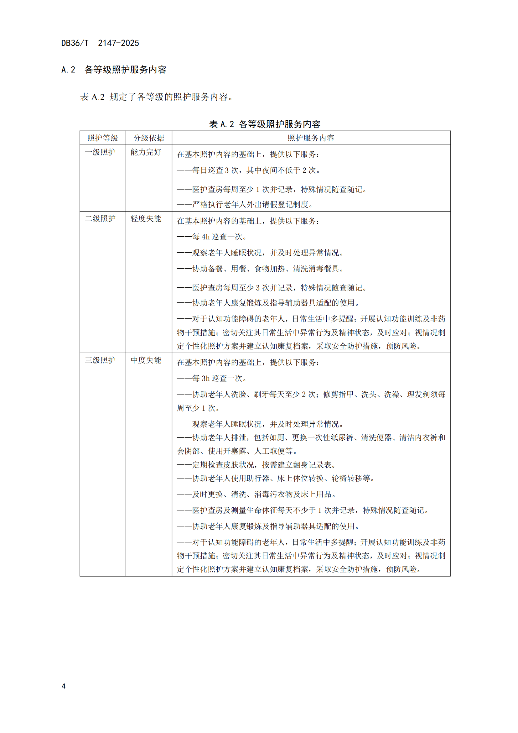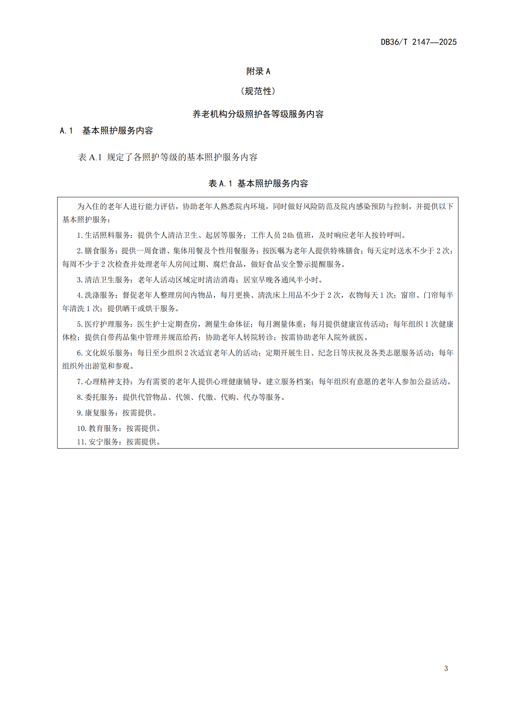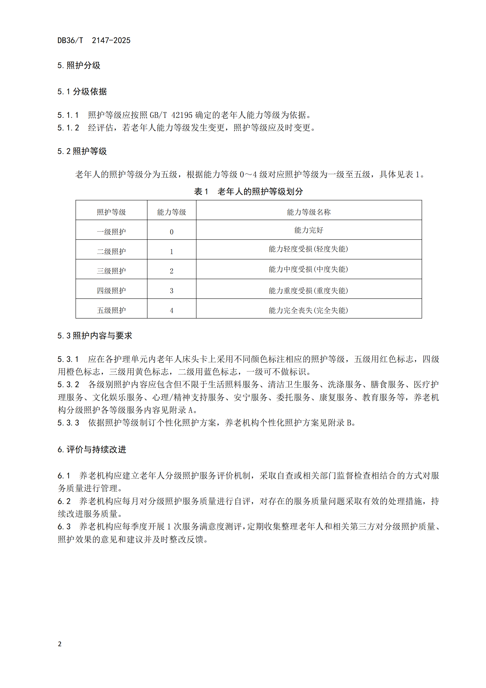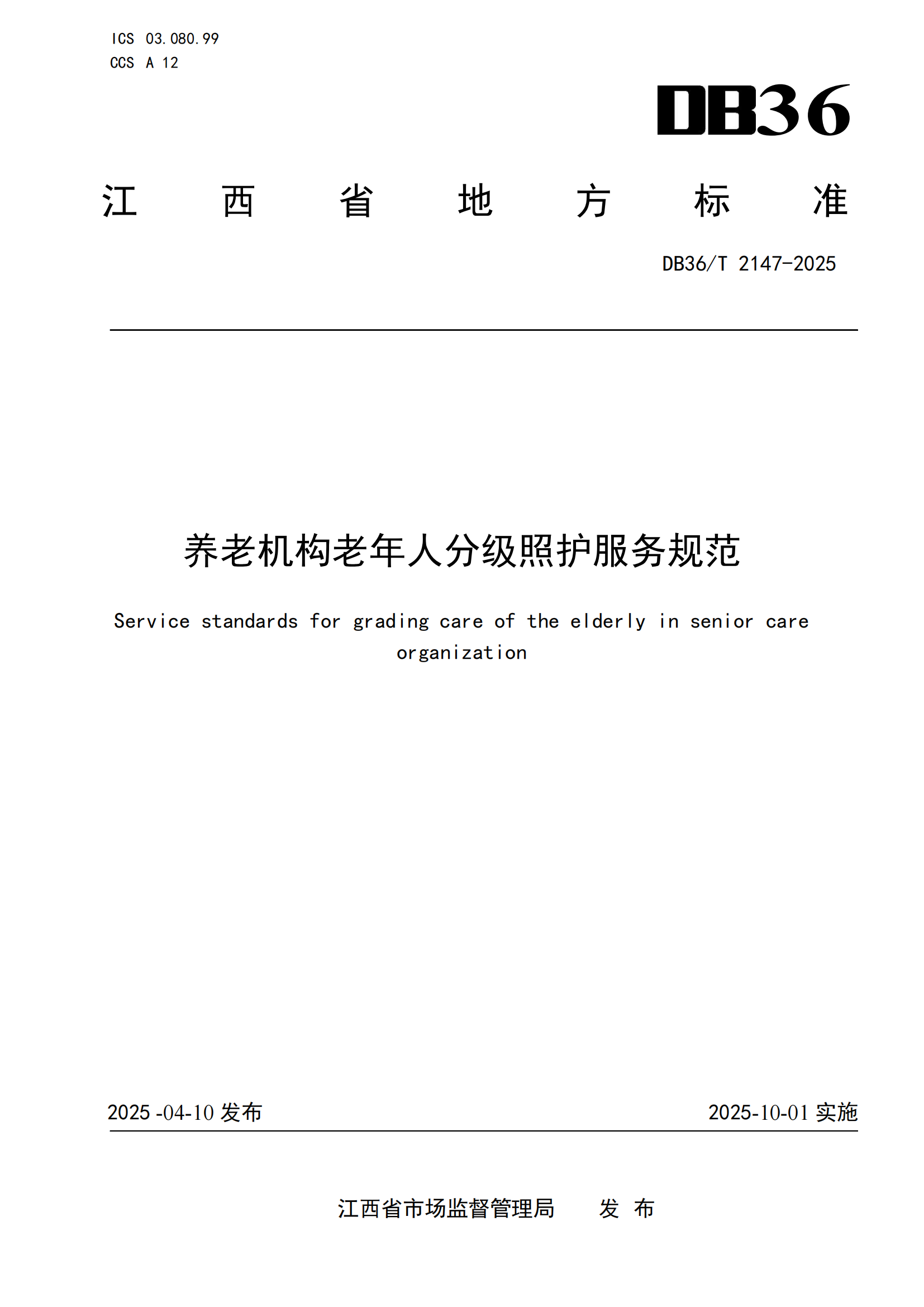 【上级文件】江西省地方标准:养老机构老年人分级照护服务规范