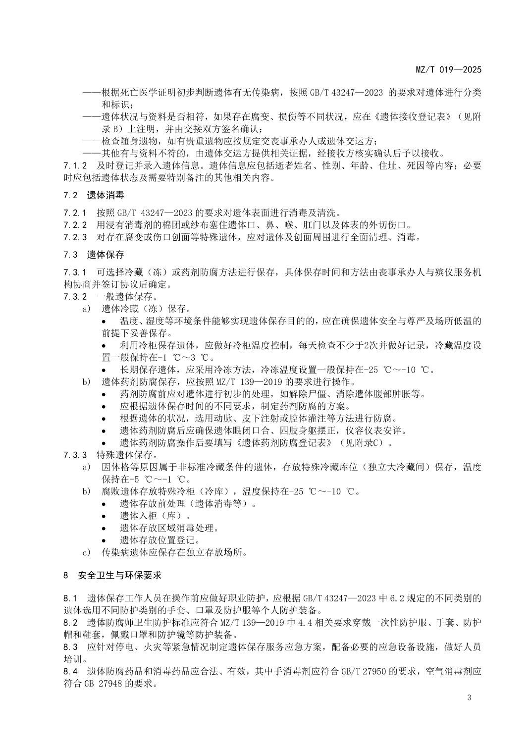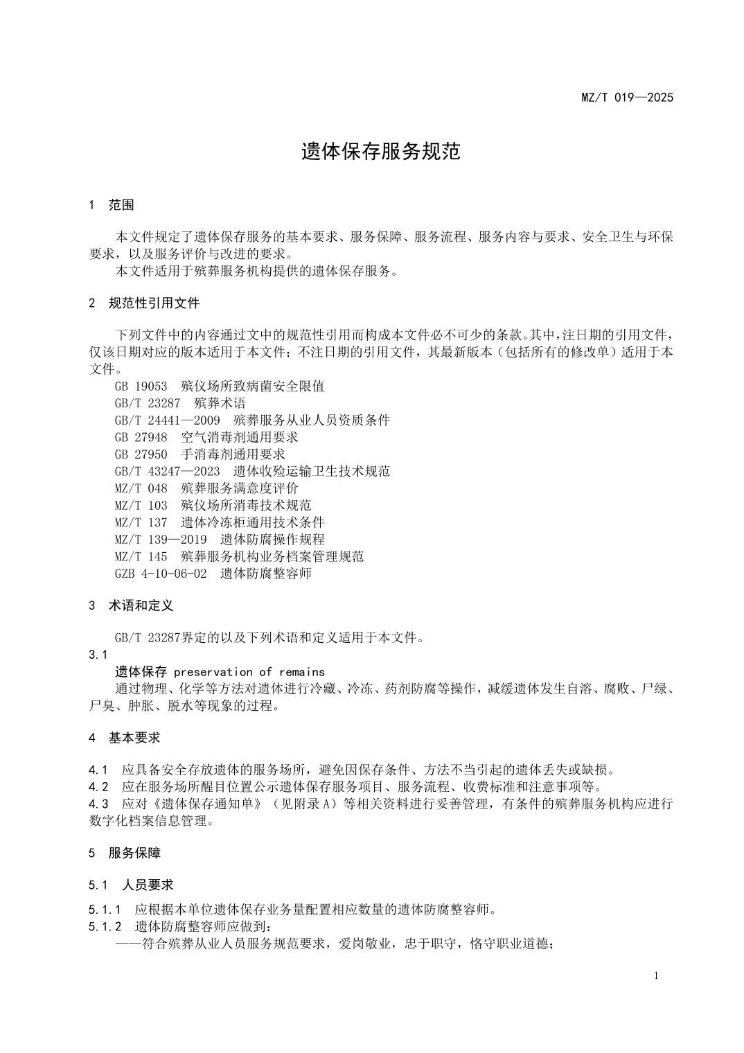 【上级文件】MZT 019—2025《遗体保存服务规范》