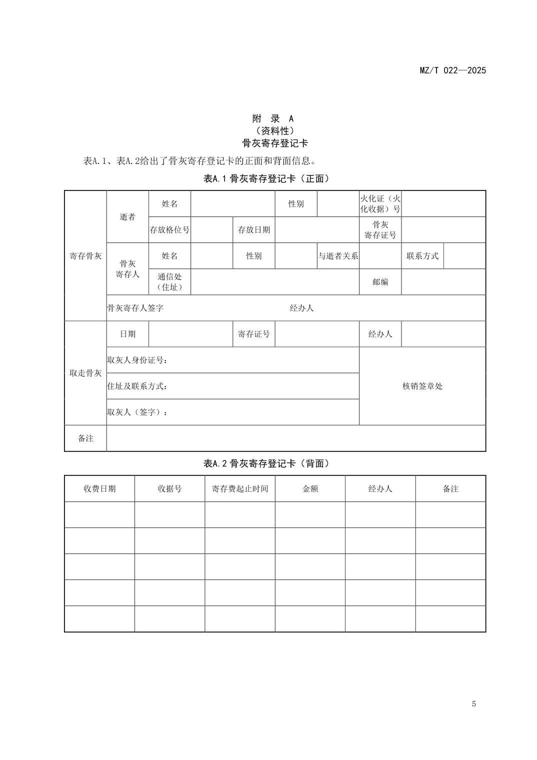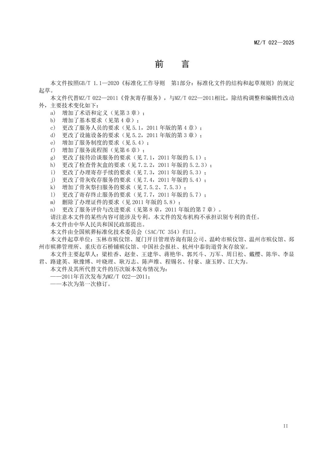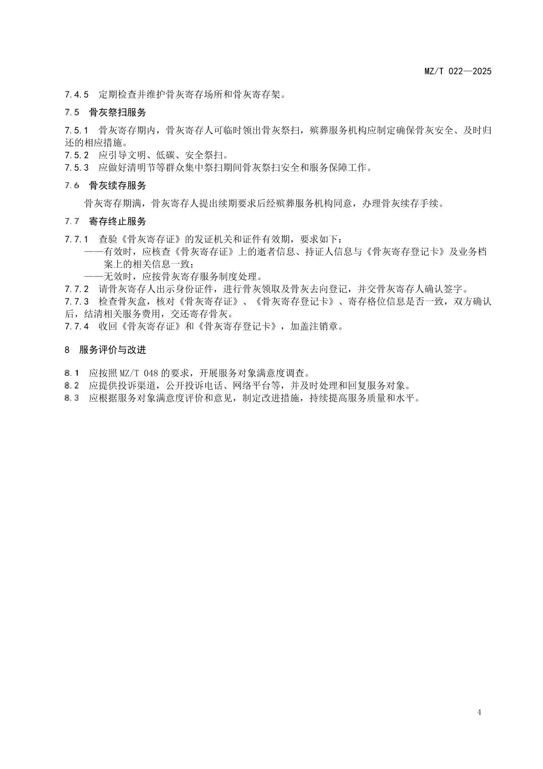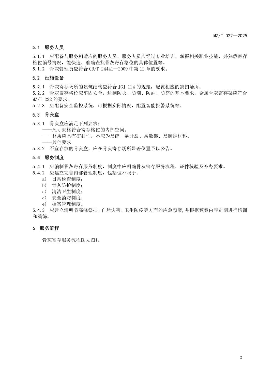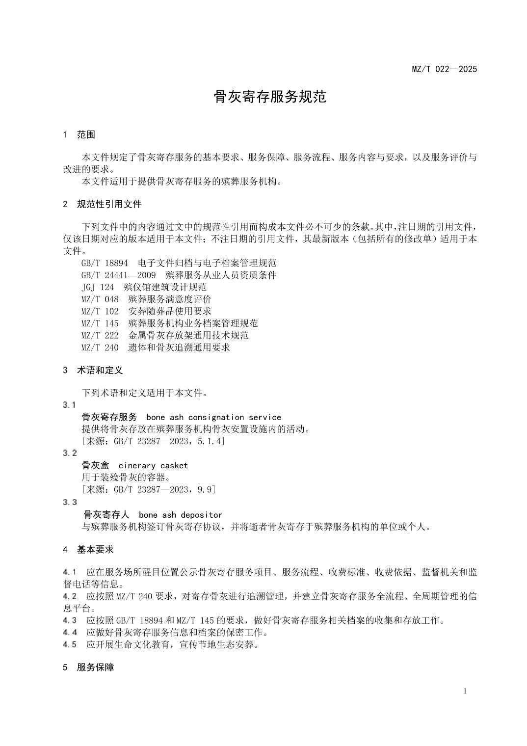 【上级文件】MZT 022—2025《骨灰寄存服务规范》