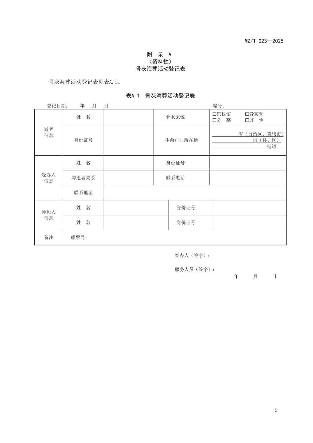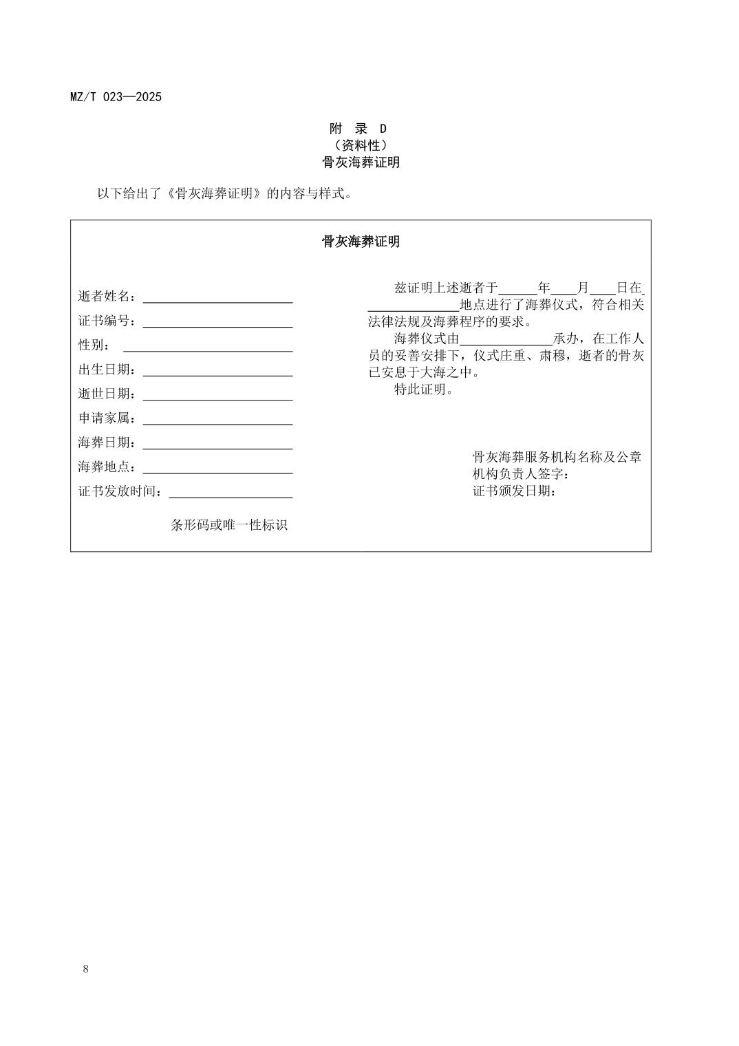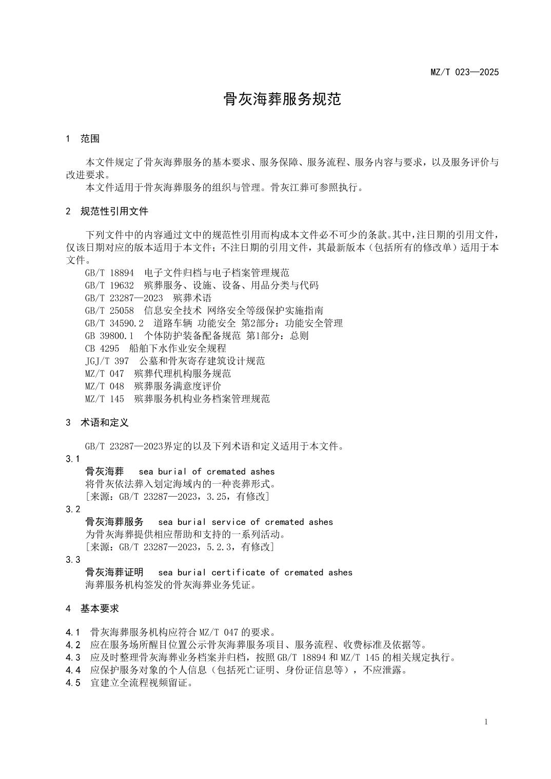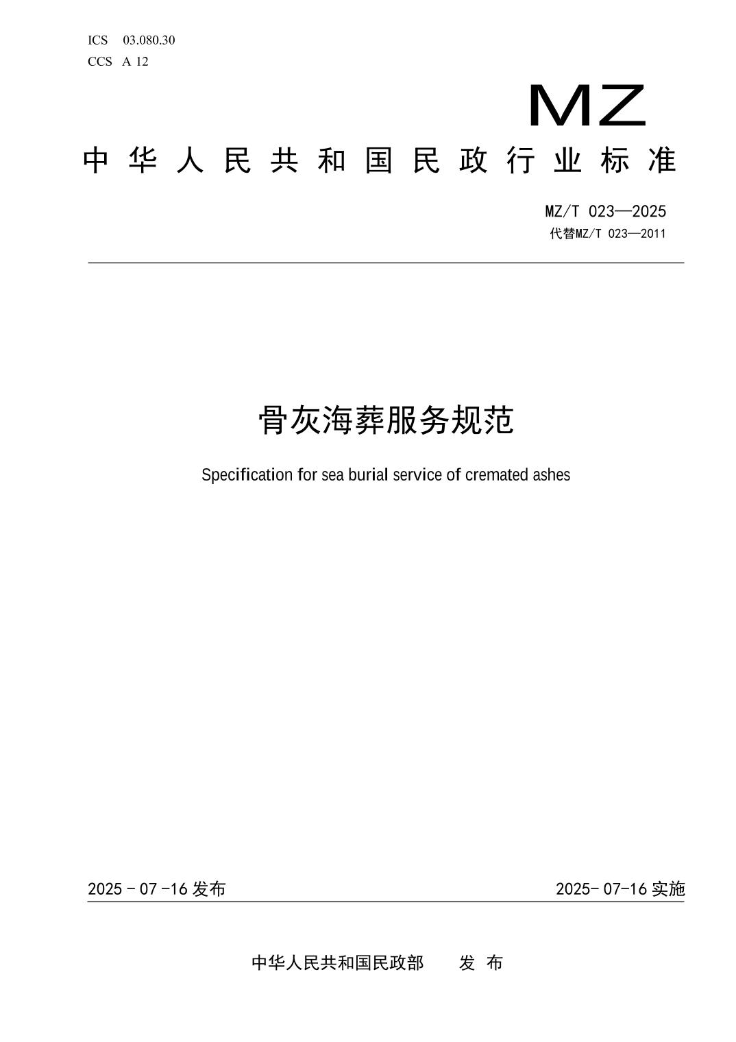 【上级文件】MZT 023—2025《骨灰海葬服务规范》