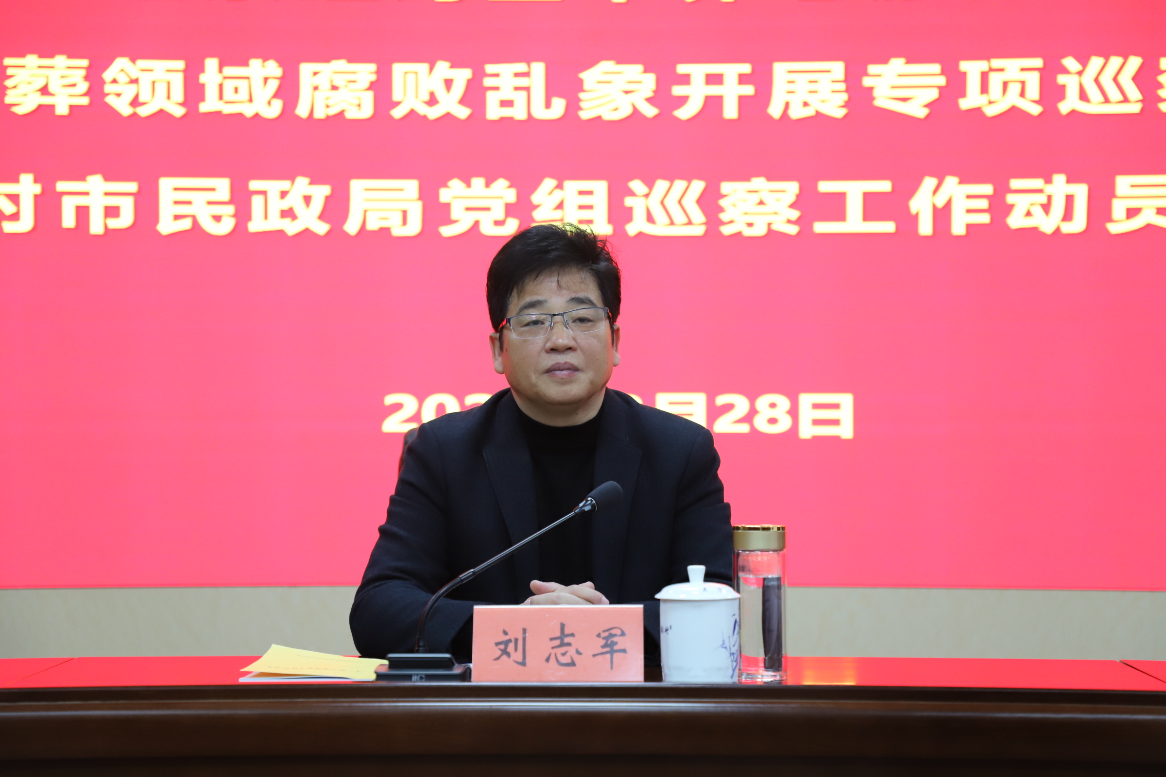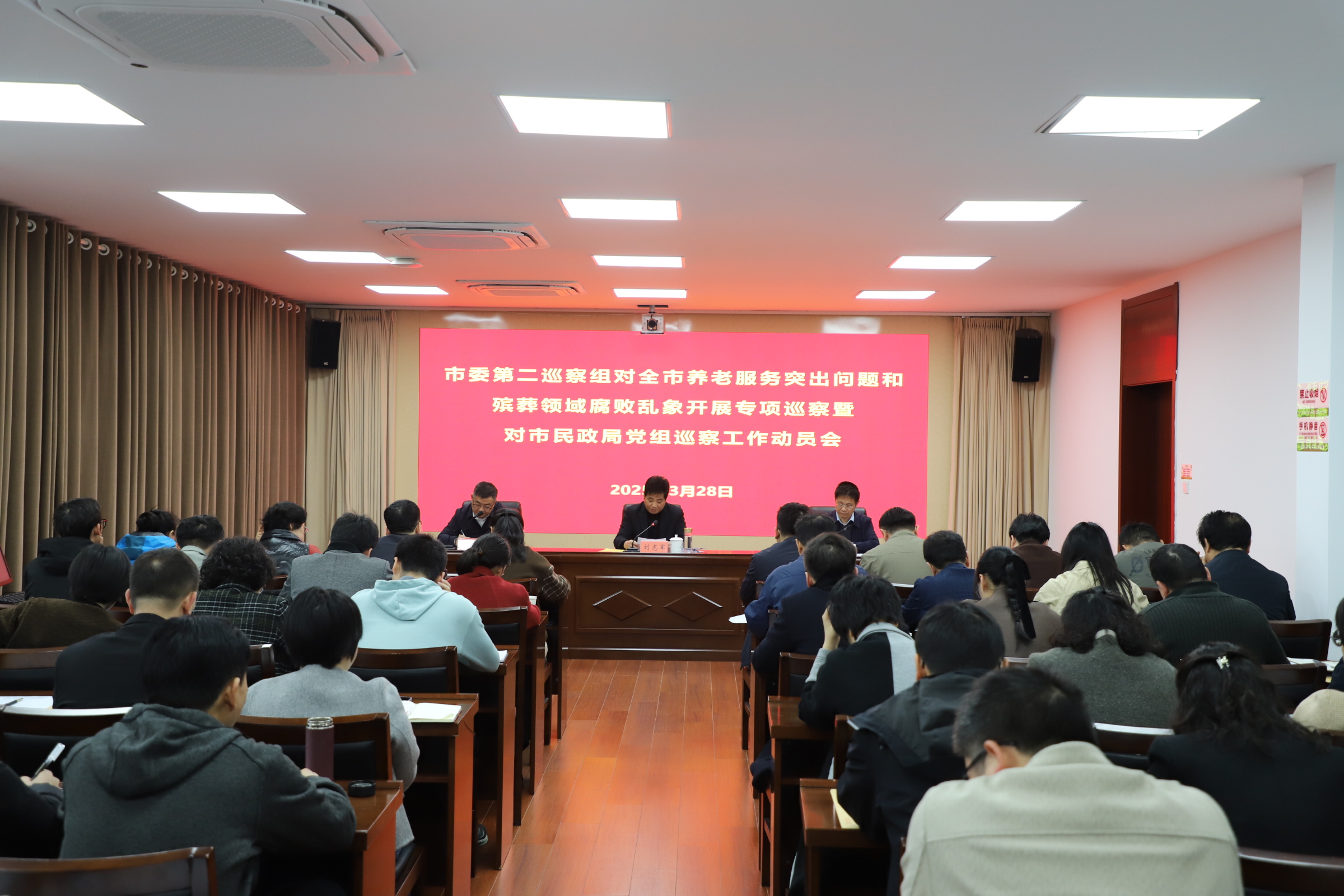 根据市委关于巡察工作的统一部署,2025年3月28日上午,市委第二巡察组对全市养老服务突出问题和殡葬领域腐败乱象开展专项巡察暨对市民政局党组巡察工作动员会召开。会前,市委第二巡察组组长刘志军主持召开与市民政局党组书记程卫东的见面沟通会,通报了巡察工作有关安排。会上,刘志军作了动员讲话,对做好巡察工作提出要求。程卫东主持会议并讲话。