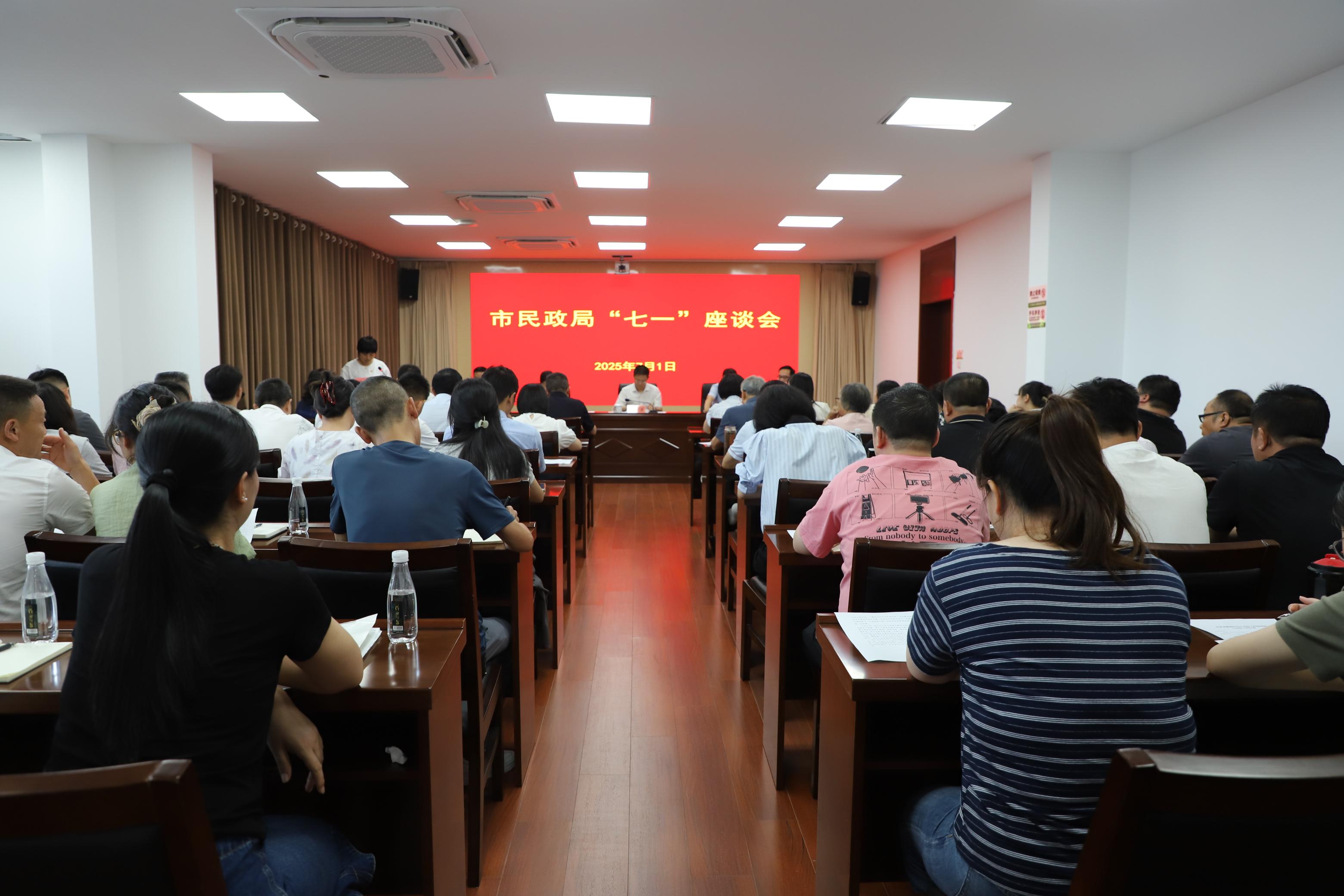 7月1日下午,市民政局召开“七一”座谈会。党组书记、局长程卫东出席会议并讲专题党课,党组成员、副局长黄志虹主持会议,局县级以上领导干部、局大楼全体党员干部、职工,局属各单位、机关各科室主要负责同志,各基层党支部支委班子、入党积极分子代表参加会议。