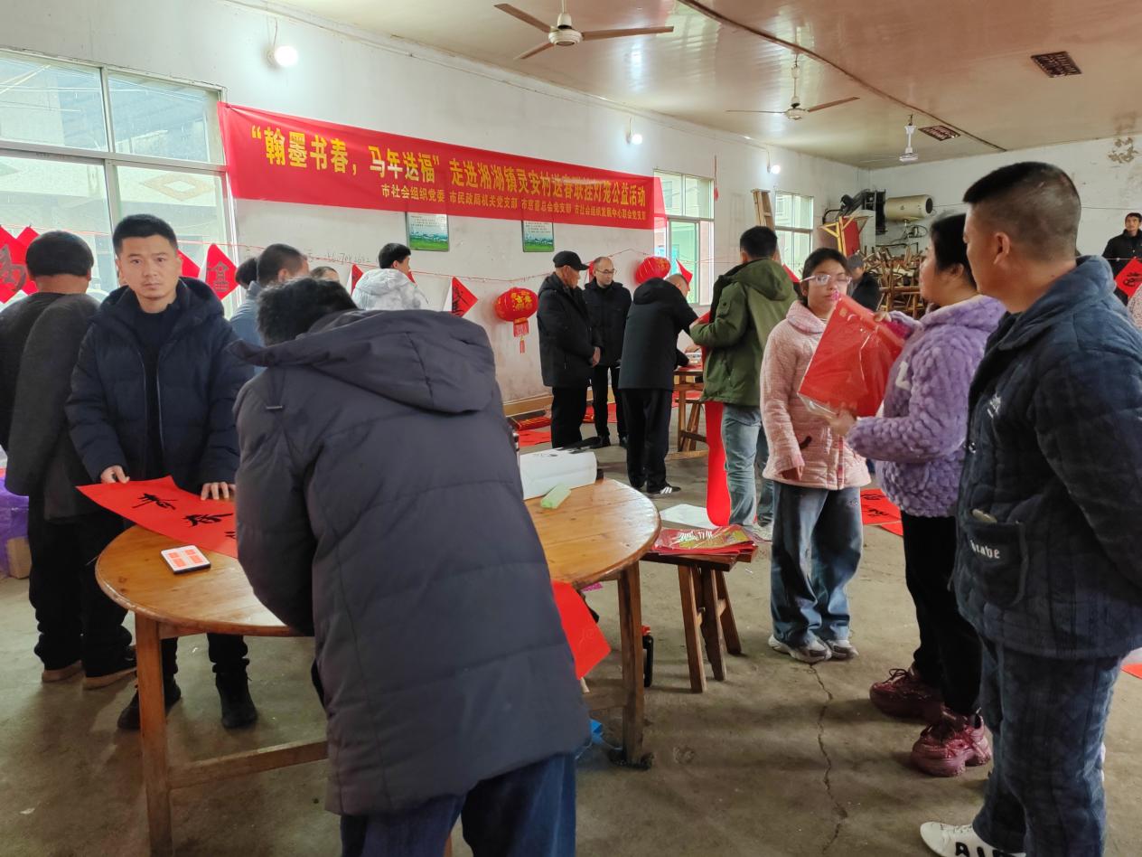 2月6日上午,市社会组织党委结合主题党日,联合市民政局机关党支部、市慈善总会党支部、市社会组织发展中心联合党支部,携手市社会福利中心驻村工作队、市民间书法家协会,赴灵安村开展“翰墨书春 马年送福”公益活动,通过文化惠民与物资帮扶相结合的方式,让村民在浓浓年味中感受到关怀与温暖。
