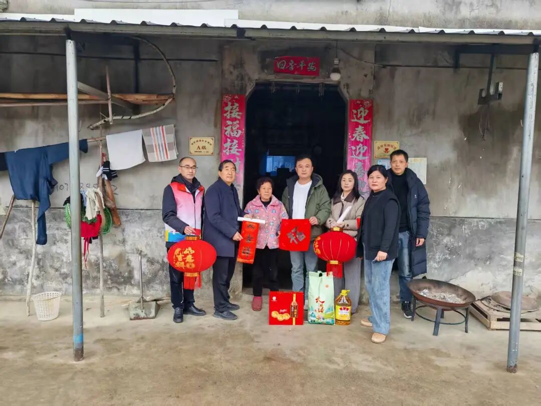 走访慰问环节,慰问组同市社会福利中心驻村第一次书记一起深入8户脱贫户和2户监测户家中,送上春联、灯笼及米、油等春节物资,工作人员与村民促膝交谈,细致询问他们的身体健康状况和年货筹备情况,认真倾听实际需求,并鼓励大家在新的一年里接续奋斗,把日子过得更红火。“手写的春联有温度,送来的物资暖人心,这个年过得特别踏实!”脱贫户蒋大爷的话语道出了村民的心声。